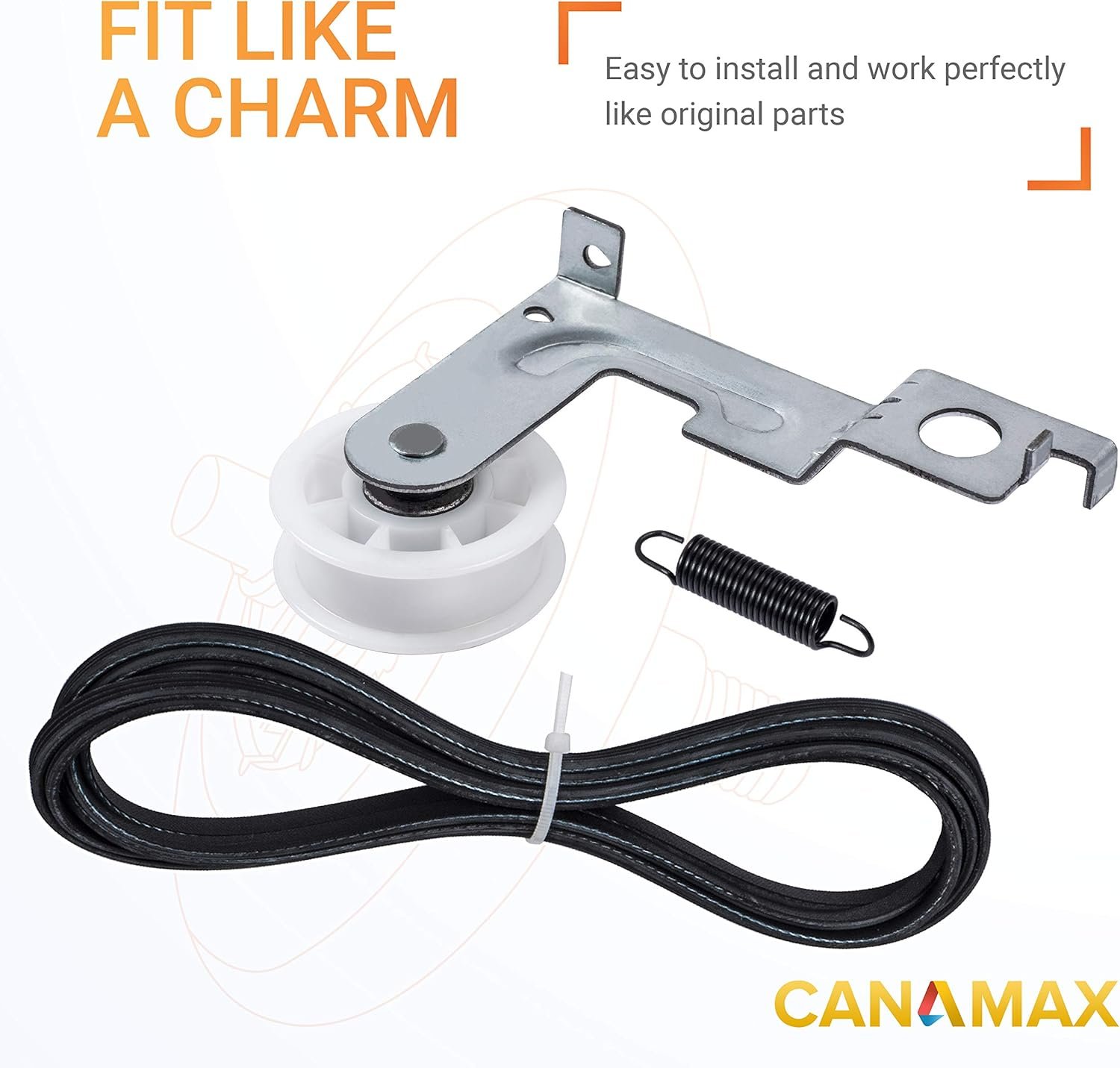 Canamax 4581EL2002C Dryer Drum Roller Assembly & 4400EL2001A Dryer Belt & 4561EL3002A Dryer Idler Pulley – Compatible with LG Kenmore Dryer