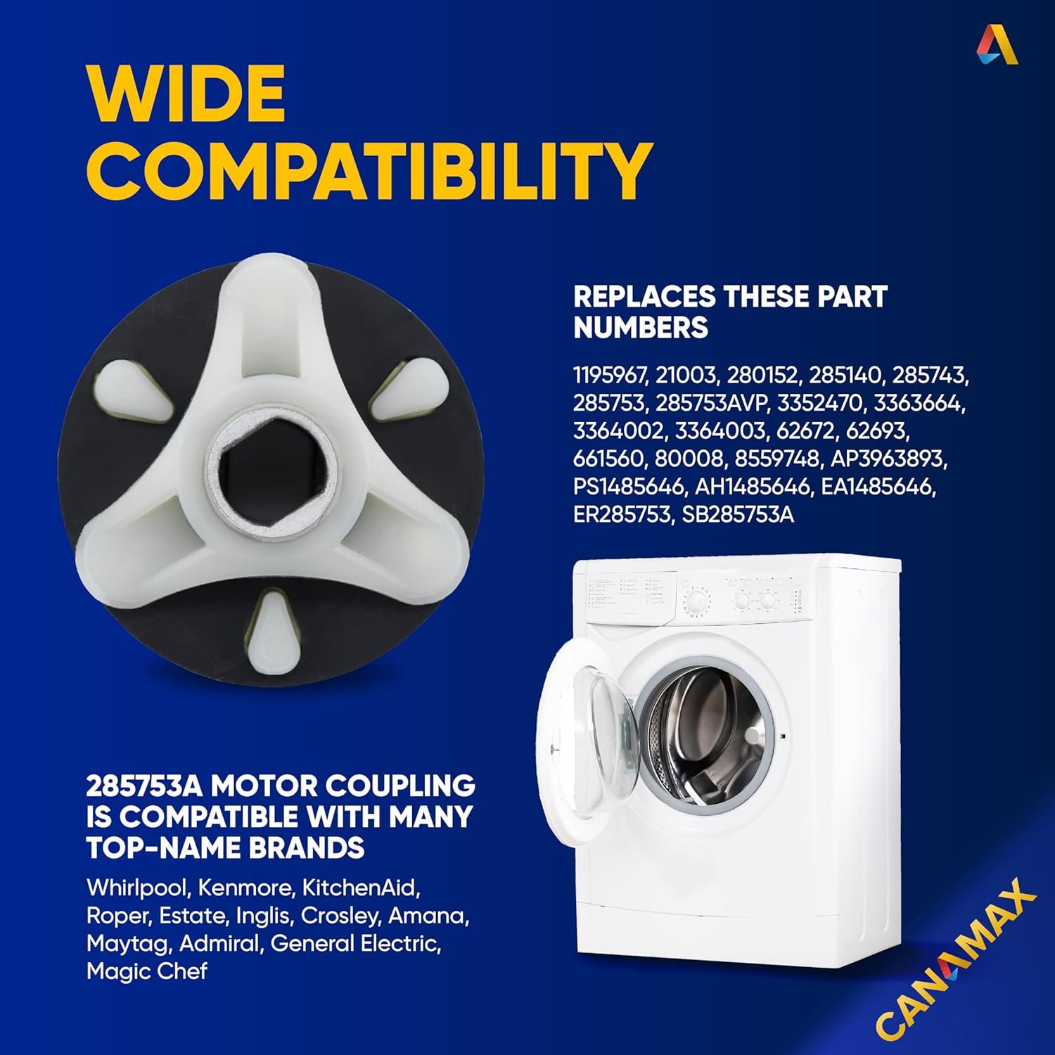 Canamax Heavy Duty 285753A Motor Coupling METAL Core – Compatible with Kenmore Whirlpool Washers – Replaces AP3963893 PS1485646 1195967 285753AVP 21003 280152 85140 285743 – Pack of 4